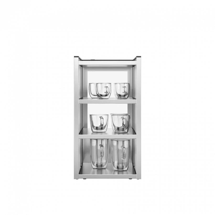 High-quality stainless steel and shatterproof glass. Designed to be positioned directly next to the machine.